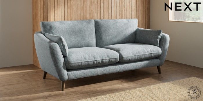 6.12.1 Buy Orlo Relaxed Sit 3 Seater Sofa Chunky Weave Mid Blue Retro Tapered - Mid from the Next UK online shop Click here to use our accessible website