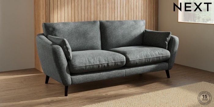6.12.1 Buy Orlo Relaxed Sit 3 Seater Sofa Cotswold Chenille Dark Grey Retro Tapered - Dark from the Next UK online shop Click here to use our accessible website