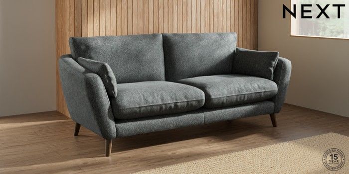 6.12.1 Buy Orlo Relaxed Sit 3 Seater Sofa Cotswold Chenille Dark Grey Retro Tapered - Mid from the Next UK online shop Click here to use our accessible website