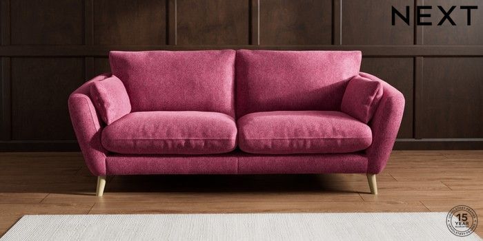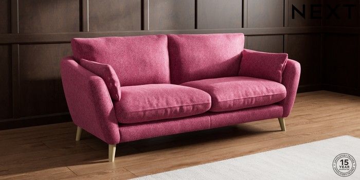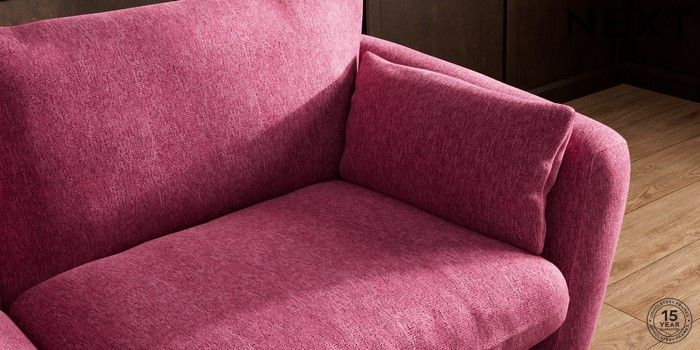 6.12.1 Buy Orlo Relaxed Sit 3 Seater Sofa Cotswold Chenille Dark Raspberry Pink Retro Tapered - Light from the Next UK online shop Click here to use our accessible website