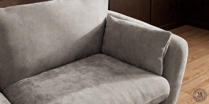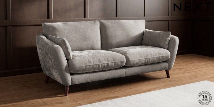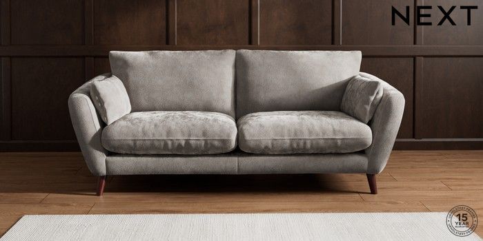 6.12.1 Buy Orlo Relaxed Sit 3 Seater Sofa Distressed Velour French Grey Retro Tapered - Dark Brown from the Next UK online shop Click here to use our accessible website