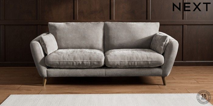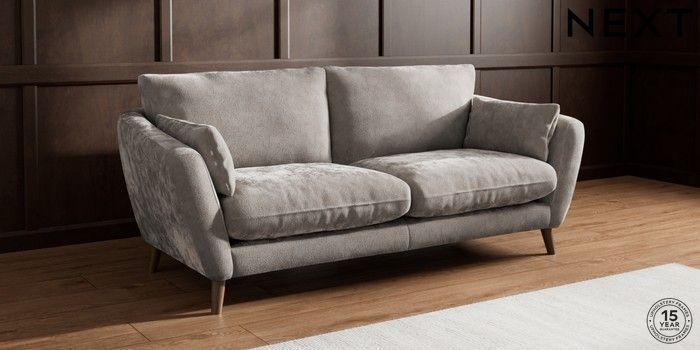 6.12.1 Buy Orlo Relaxed Sit 3 Seater Sofa Distressed Velour French Grey Retro Tapered - Mid from the Next UK online shop Click here to use our accessible website