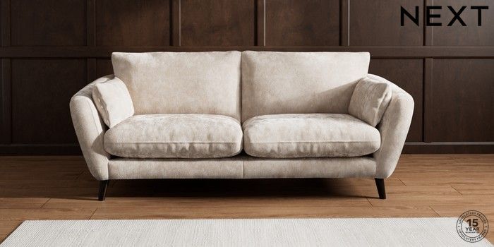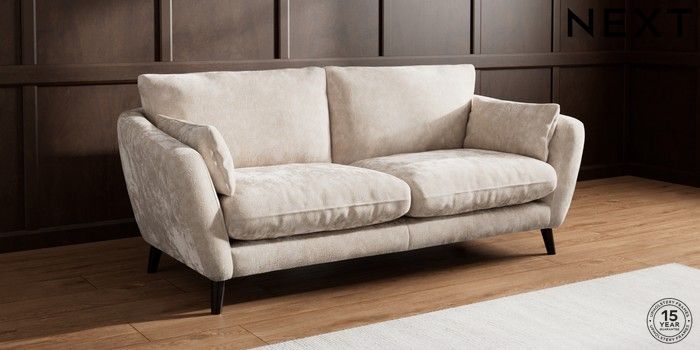 6.12.1 Buy Orlo Relaxed Sit 3 Seater Sofa Distressed Velour Mid Natural Retro Tapered - Dark from the Next UK online shop Click here to use our accessible website