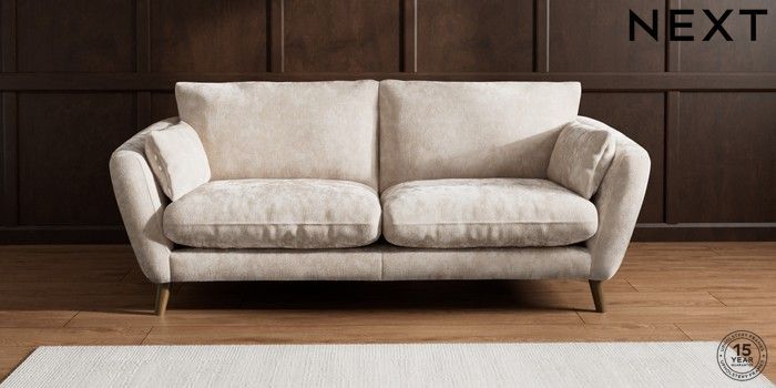 6.12.1 Buy Orlo Relaxed Sit 3 Seater Sofa Distressed Velour Mid Natural Retro Tapered - Mid from the Next UK online shop Click here to use our accessible website