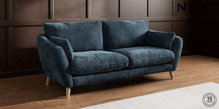 6.12.1 Buy Orlo Relaxed Sit 3 Seater Sofa Distressed Velour Midnight Blue Retro Tapered - Light from the Next UK online shop Click here to use our accessible website