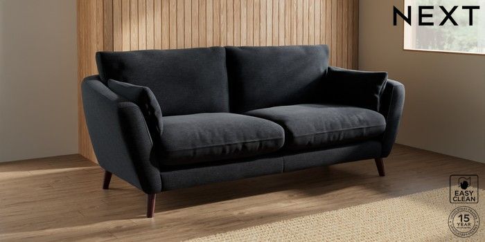 6.12.1 Buy Orlo Relaxed Sit 3 Seater Sofa Fine Chenille Easy Clean Black Retro Tapered - Dark Brown from the Next UK online shop Click here to use our accessible website