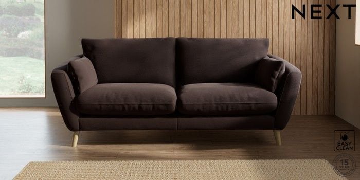 6.12.1 Buy Orlo Relaxed Sit 3 Seater Sofa Fine Chenille Easy Clean Chocolate Brown Retro Tapered - Light from the Next UK online shop Click here to use our accessible website