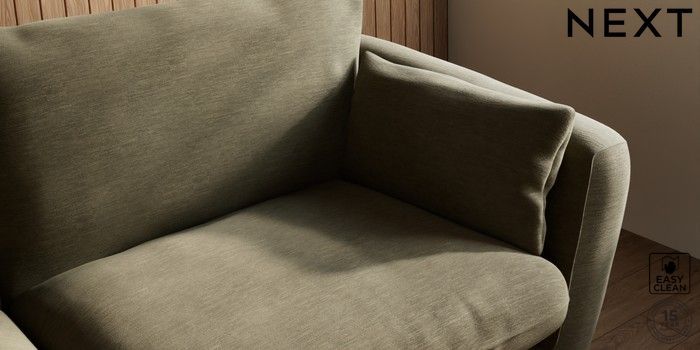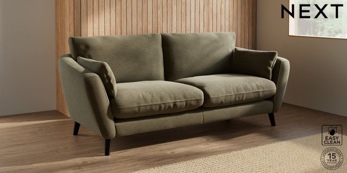 6.12.1 Buy Orlo Relaxed Sit 3 Seater Sofa Fine Chenille Easy Clean Dark Moss Green Retro Tapered - Dark from the Next UK online shop Click here to use our accessible website
