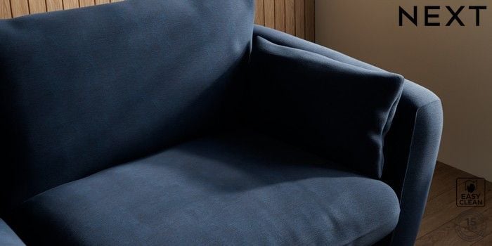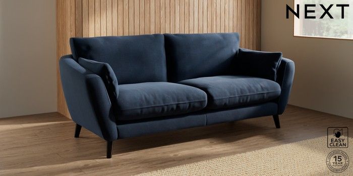 6.12.1 Buy Orlo Relaxed Sit 3 Seater Sofa Fine Chenille Easy Clean Dark Navy Blue Retro Tapered - Dark from the Next UK online shop Click here to use our accessible website