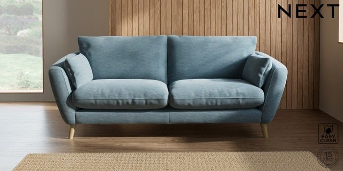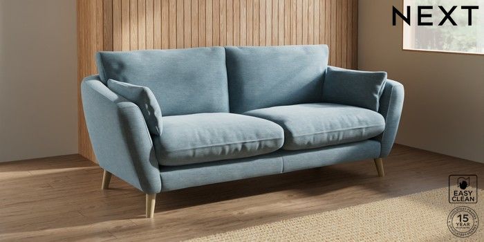 6.12.1 Buy Orlo Relaxed Sit 3 Seater Sofa Fine Chenille Easy Clean Mid Blue Retro Tapered - Light from the Next UK online shop Click here to use our accessible website