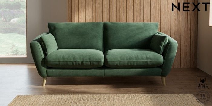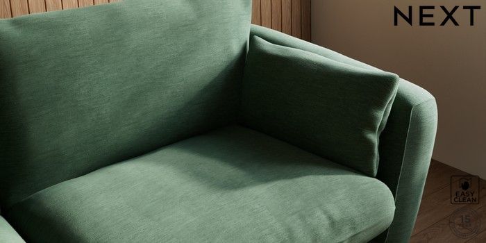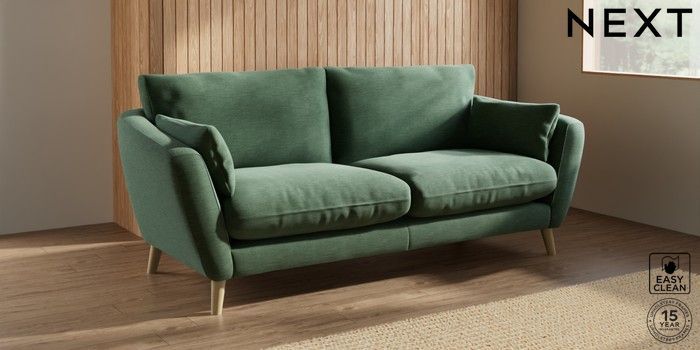 6.12.1 Buy Orlo Relaxed Sit 3 Seater Sofa Fine Chenille Easy Clean Mid Khaki Green Retro Tapered - Light from the Next UK online shop Click here to use our accessible website
