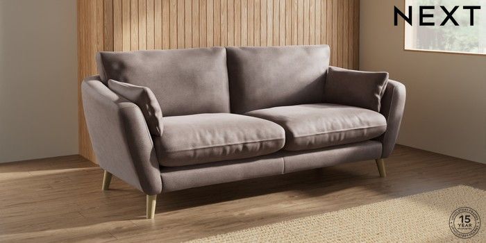 7.0.3 Buy Orlo Relaxed Sit 3 Seater Sofa Luxe Chenille Mink Brown Retro Tapered - Light from the Next UK online shop Click here to use our accessible website