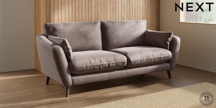 7.0.3 Buy Orlo Relaxed Sit 3 Seater Sofa Luxe Chenille Mink Brown Retro Tapered - Mid from the Next UK online shop Click here to use our accessible website