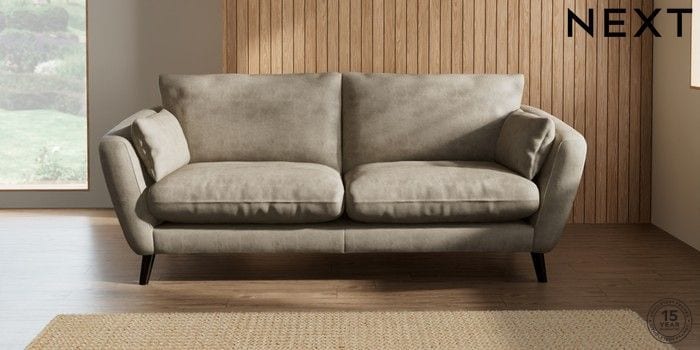 6.12.1 Buy Orlo Relaxed Sit 3 Seater Sofa Monza Faux Leather Easy Clean Mink Brown Retro Tapered - Dark from the Next UK online shop Click here to use our accessible website