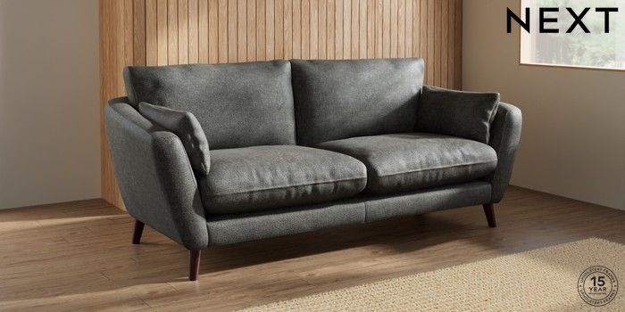 6.12.1 Buy Orlo Relaxed Sit 3 Seater Sofa Plush Chenille Dark Grey Retro Tapered - Dark Brown from the Next UK online shop Click here to use our accessible website