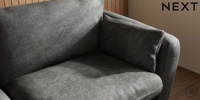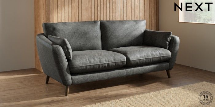 6.12.1 Buy Orlo Relaxed Sit 3 Seater Sofa Plush Chenille Dark Grey Retro Tapered - Mid from the Next UK online shop Click here to use our accessible website