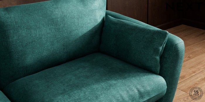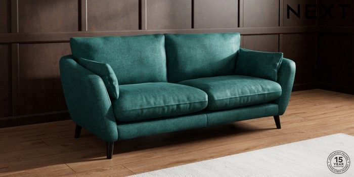 6.12.1 Buy Orlo Relaxed Sit 3 Seater Sofa Plush Chenille Dark Teal Green Retro Tapered - Dark from the Next UK online shop Click here to use our accessible website