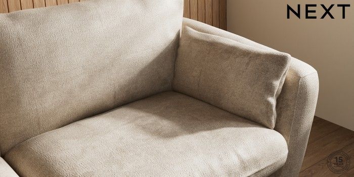 6.12.1 Buy Orlo Relaxed Sit 3 Seater Sofa Plush Chenille Light Natural Retro Tapered - Mid from the Next UK online shop Click here to use our accessible website