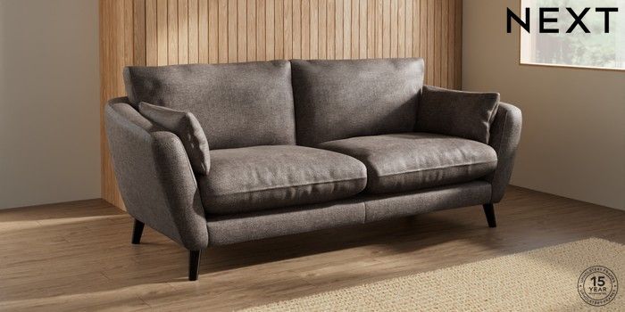 6.12.1 Buy Orlo Relaxed Sit 3 Seater Sofa Plush Chenille Mink Brown Retro Tapered - Dark from the Next UK online shop Click here to use our accessible website