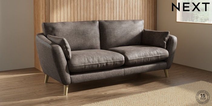 6.12.1 Buy Orlo Relaxed Sit 3 Seater Sofa Plush Chenille Mink Brown Retro Tapered - Light from the Next UK online shop Click here to use our accessible website