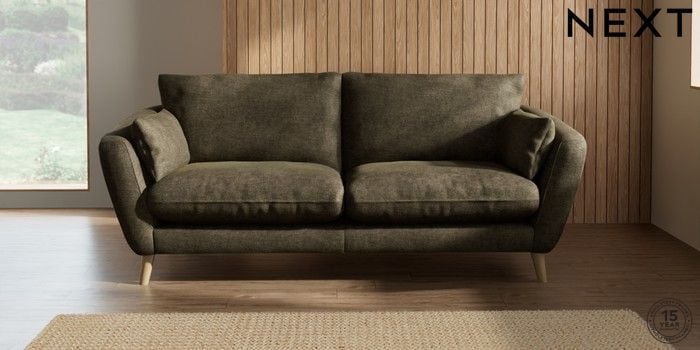 6.12.1 Buy Orlo Relaxed Sit 3 Seater Sofa Plush Chenille Moss Green Retro Tapered - Light from the Next UK online shop Click here to use our accessible website