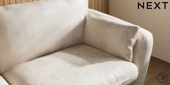 6.12.1 Buy Orlo Relaxed Sit 3 Seater Sofa Plush Chenille Oyster Retro Tapered - Mid from the Next UK online shop Click here to use our accessible website