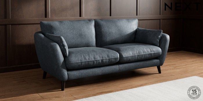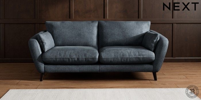 6.12.1 Buy Orlo Relaxed Sit 3 Seater Sofa Plush Chenille Slate Blue Retro Tapered - Dark from the Next UK online shop Click here to use our accessible website