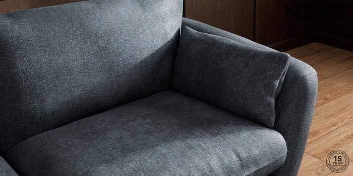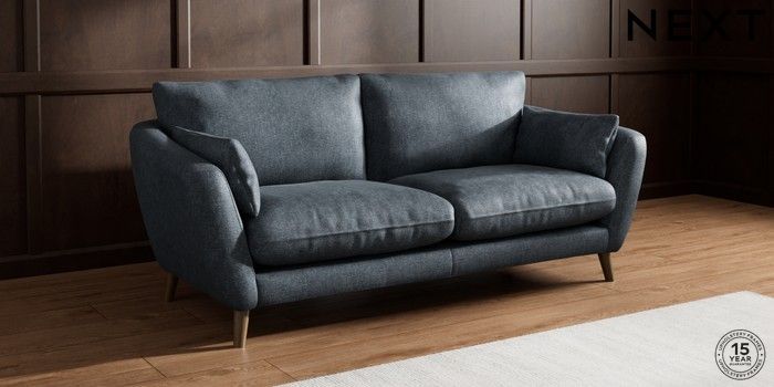 6.12.1 Buy Orlo Relaxed Sit 3 Seater Sofa Plush Chenille Slate Blue Retro Tapered - Mid from the Next UK online shop Click here to use our accessible website