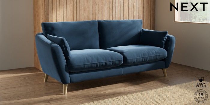 6.12.1 Buy Orlo Relaxed Sit 3 Seater Sofa Plush Velvet Easy Clean Airforce Blue Retro Tapered - Light from the Next UK online shop Click here to use our accessible website
