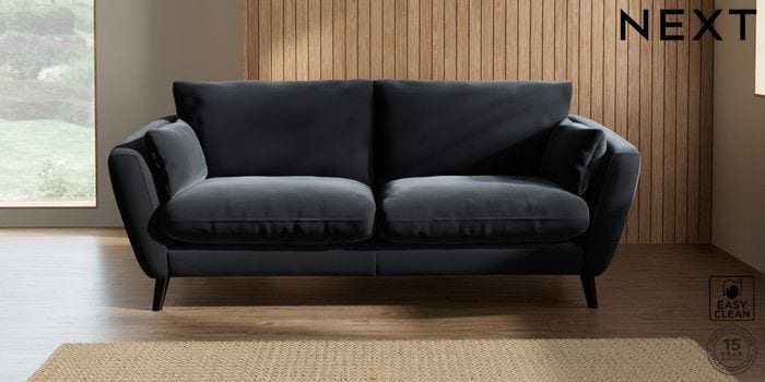 6.12.1 Buy Orlo Relaxed Sit 3 Seater Sofa Plush Velvet Easy Clean Charcoal Grey Retro Tapered - Dark from the Next UK online shop Click here to use our accessible website