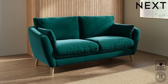 6.12.1 Buy Orlo Relaxed Sit 3 Seater Sofa Plush Velvet Easy Clean Juniper Green Retro Tapered - Light from the Next UK online shop Click here to use our accessible website