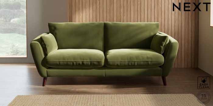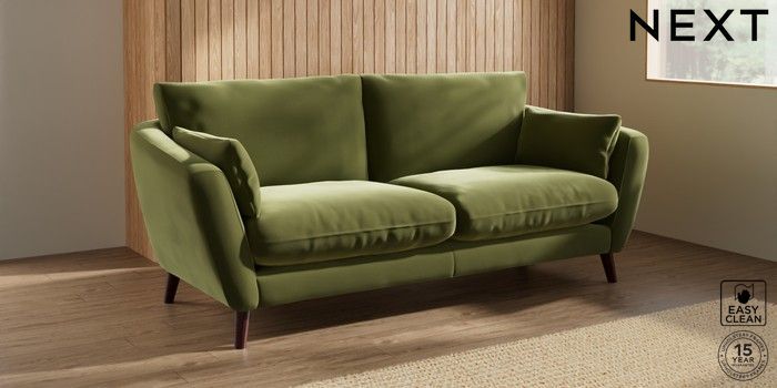 6.12.1 Buy Orlo Relaxed Sit 3 Seater Sofa Plush Velvet Easy Clean Mid Olive Green Retro Tapered - Dark Brown from the Next UK online shop Click here to use our accessible website
