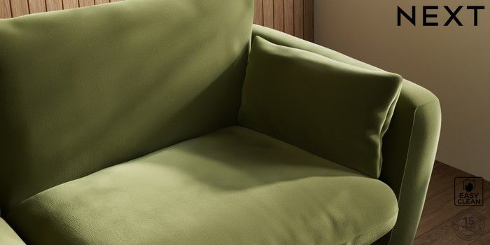 6.12.1 Buy Orlo Relaxed Sit 3 Seater Sofa Plush Velvet Easy Clean Mid Olive Green Retro Tapered - Light from the Next UK online shop Click here to use our accessible website