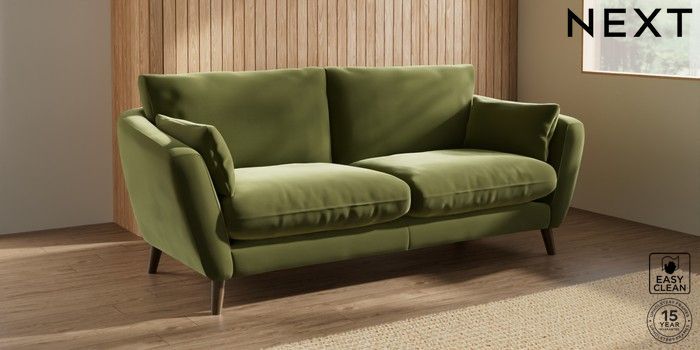 6.12.1 Buy Orlo Relaxed Sit 3 Seater Sofa Plush Velvet Easy Clean Mid Olive Green Retro Tapered - Mid from the Next UK online shop Click here to use our accessible website