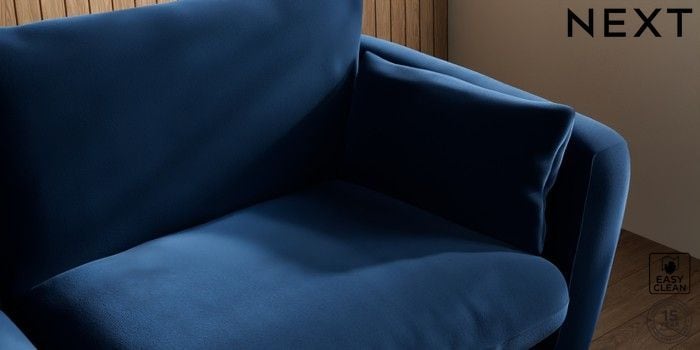 6.12.1 Buy Orlo Relaxed Sit 3 Seater Sofa Plush Velvet Easy Clean Navy Blue Retro Tapered - Light from the Next UK online shop Click here to use our accessible website