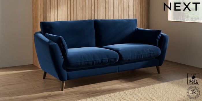 6.12.1 Buy Orlo Relaxed Sit 3 Seater Sofa Plush Velvet Easy Clean Navy Blue Retro Tapered - Mid from the Next UK online shop Click here to use our accessible website