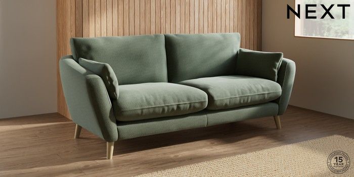 6.12.1 Buy Orlo Relaxed Sit 3 Seater Sofa Relaxed Linen Look Dark Green Retro Tapered - Light from the Next UK online shop Click here to use our accessible website