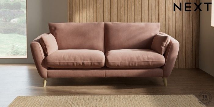 6.12.1 Buy Orlo Relaxed Sit 3 Seater Sofa Relaxed Linen Look Light Rust Brown Retro Tapered - Light from the Next UK online shop Click here to use our accessible website