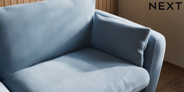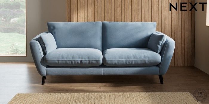 6.12.1 Buy Orlo Relaxed Sit 3 Seater Sofa Relaxed Linen Look Mid Blue Retro Tapered - Dark from the Next UK online shop Click here to use our accessible website
