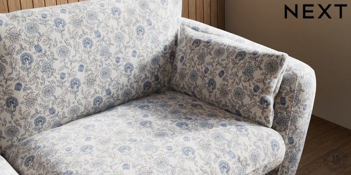 7.3.1 Buy Orlo Relaxed Sit 3 Seater Sofa Relaxed Linen Look Print Woodblock Floral Blue Retro Tapered - Dark from the Next UK online shop
