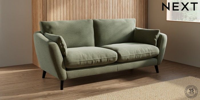 7.0.3 Buy Orlo Relaxed Sit 3 Seater Sofa Ripple Chenille Mid Moss Green Retro Tapered - Dark from the Next UK online shop Click here to use our accessible website