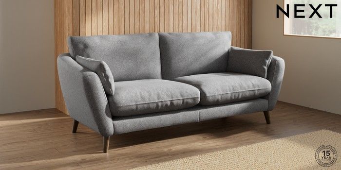 6.12.1 Buy Orlo Relaxed Sit 3 Seater Sofa Studio Chenille Mid Grey Retro Tapered - Mid from the Next UK online shop Click here to use our accessible website