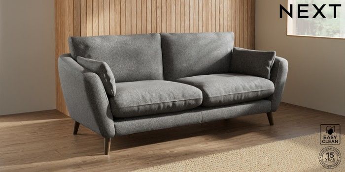 6.12.1 Buy Orlo Relaxed Sit 3 Seater Sofa Tweedy Blend Easy Clean Dark Grey Retro Tapered - Mid from the Next UK online shop Click here to use our accessible website
