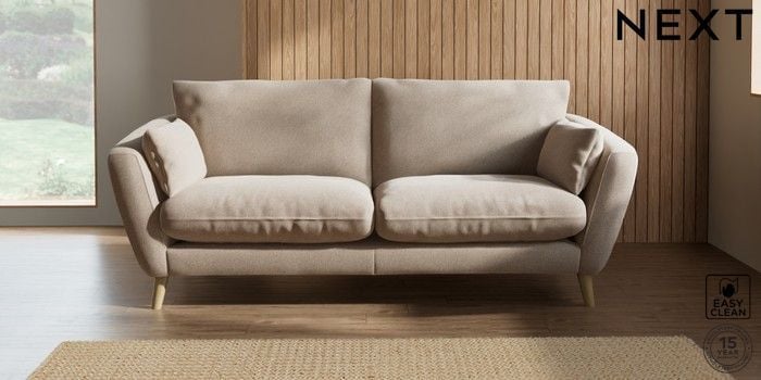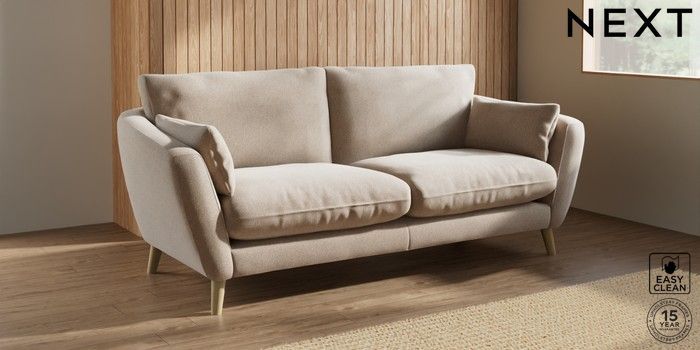 6.12.1 Buy Orlo Relaxed Sit 3 Seater Sofa Tweedy Blend Easy Clean Light Dove Natural Retro Tapered - Light from the Next UK online shop Click here to use our accessible website