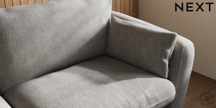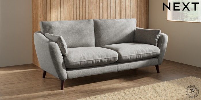 6.12.1 Buy Orlo Relaxed Sit 3 Seater Sofa Tweedy Chenille Mid Grey Retro Tapered - Dark Brown from the Next UK online shop Click here to use our accessible website