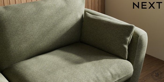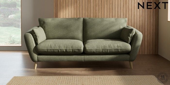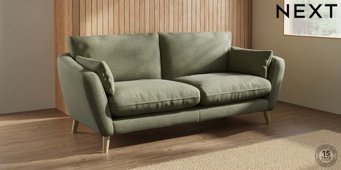6.12.1 Buy Orlo Relaxed Sit 3 Seater Sofa Tweedy Chenille Mid Moss Green Retro Tapered - Light from the Next UK online shop Click here to use our accessible website