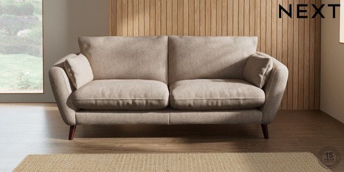 6.12.1 Buy Orlo Relaxed Sit 3 Seater Sofa Tweedy Chenille Mid Natural Retro Tapered - Dark Brown from the Next UK online shop Click here to use our accessible website