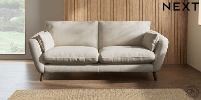 6.12.1 Buy Orlo Relaxed Sit 3 Seater Sofa Tweedy Chenille Oyster Retro Tapered - Mid from the Next UK online shop Click here to use our accessible website