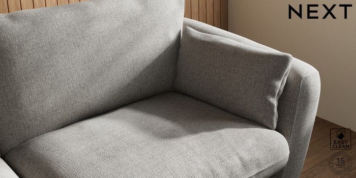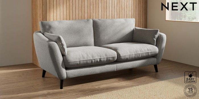 6.12.1 Buy Orlo Relaxed Sit 3 Seater Sofa Woven Chenille Easy Clean Light Grey Retro Tapered - Dark from the Next UK online shop Click here to use our accessible website