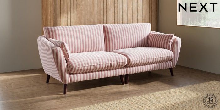 7.3.1 Buy Orlo Relaxed Sit 4 Seater Sofa Bold Chenille Stripe Dark Pink Retro Tapered - Dark Brown from the Next UK online shop Click here to use our accessible website